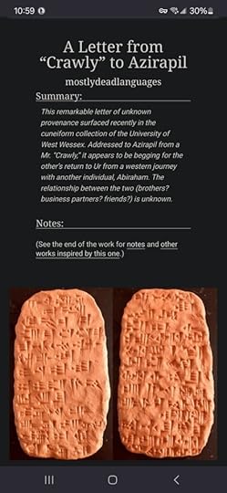 just found fanfic written on clay tablets in cuneiform and then the pictures were uploaded to ao3 the good omens fandom is insane