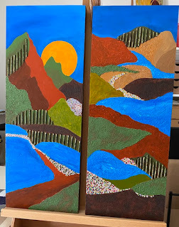 I love mixed media that includes materials not usually found in the fine art section of my local art stores. The paintings shown here were sold in an exhibition last year, and I used diamond dots, fabric, and wooden sticks amongst other things.