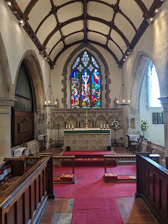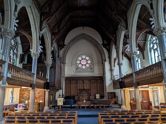 Interior of the Headcorn church That's it for now. I'll upload a photo log of my second day tomorrow. I'm posting from a cell phone rather than a computer, so any longform written reflections, which you might justly have expected of me, will have to wait till my return.