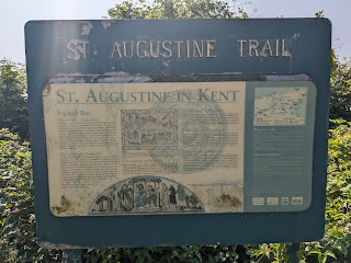For days 2 and 3 of my journey (Fri/Sat last week), I undertook a walking pilgrimage across Kent, England's southeastern region. Not only was this area the ancestral homeland of the Burden family, it was also the site of a major event in church history, one that was near and dear to my heart as a student of early Christian missions: the evangelization of the Angles & Saxons, setting England on a remarkable history of Christian faith. This happened near the end of the sixth century, when Pope Gregory deployed Augustine (not the more famous church father) and a band of helpers to bring the gospel to the new pagan settlers of Britain. Augustine landed near what is now Ramsgate, on England's southeastern tip, where he met and preached to the king, then was invited to come and establish a mission at the royal city of Canterbury. My journey, then, would be to walk that ancient mission team's journey, from Ramsgate to Canterbury, where the old abbey of St Augustine of Canterbury still lies. Here are the two main days of that journey, ending at Fordwich, just outside Canterbury. Tomorrow I'll post about my entry into Canterbury on Sunday morning.