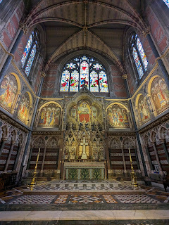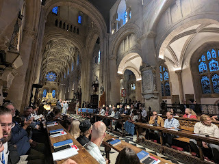 The second set of reflections I've been ruminating on have to do with the Eucharist (that is, communion). If I had to look back and say which experiences most captivated me and produced the most profound spiritual effects in my interior life during the trip, they were all centered on the Eucharist. While I attended nearly as many church services as it is possible to attend while in England (many churches, following a pattern set down in the English Reformation, hold twice-daily prayer services and offer communion several times a week), three such experiences stood out to me: a communion service in the crypt of Canterbury Cathedral at the end of my walking journey across Kent, another at the high altar of Lichfield Cathedral on the Feast of the Transfiguration, and a third in the nave of Southwark Cathedral on my final day in England. In each case, the moments of consecration and reception in the communion liturgy struck me with raw and unexpected emotional power, in a way that has stuck with me over the succeeding weeks.