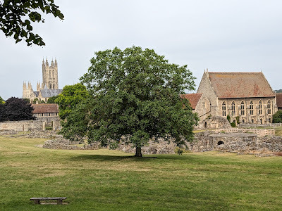 On Sunday I finished the pilgrimage trail, walking the last few miles through the woods from Fordwich to Canterbury. I was able to attend both a communion service and the office of morning prayer in Canterbury Cathedral. I also visited the ruins of Augustine's old abbey and St Martin's, the oldest continuously-used church in the English-speaking world, where Christians have been worshipping since c.600 A.D. After that, it was on the train to my conference in Oxford (with just another quick stop along the way at Rochester Cathedral, where another member of Augustine's original mission team also established a church).