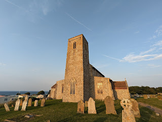 After my conference in Oxford wrapped up, I took a couple days to head east, into East Anglia and Norfolk, which, like Kent, were early centers of the Anglo-Saxon reception of Christianity in the 7th century. I stopped at cathedrals in Peterborough, Ely, Bury St Edmunds, and Norwich, but the real goal for me was to reach a much smaller church, and one that came a little later in Christian history: St Julian's church, Norwich. This medieval church had been home to one of the great Christian writers of the Middle Ages, an anonymous woman now know only for the church in which she lived as an anchorite (a hermit-like monastic in permanent residence in a cell attached to a church): Julian of Norwich. Her book, Revelations of Divine Love, has long been among the books I've most highly treasured, with words that elucidate the love of God to me. So amid all the cathedrals and their splendor, I spent most of my time in the reconstructed Church of St Julian (there's a guesthouse nearby where I stayed), and was privileged to have church there Sunday morning. Next up, after a bit of birding here in the Norfolk area, it's back to London for a whirlwind look at some of the city's church history sites, and then a flight back home.
