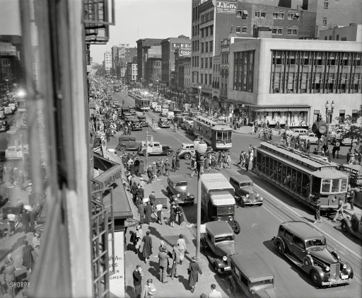 Every car on the street, even that Packard limo in the lower right corner, has a rubberized canvas insert in the roof, pointed out by Dave, th...