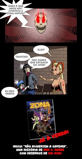 Ah! Já quase me esquecia de dizer que a banda desenhada “Não alimentem a Caveira” (baseado no meu romance “Não Apodreças nos meus Braços“), escrita e pintada por mim, com desenhos do Rui Alex, vai ser publicada no Zona Nippon 1, a ser lançada no dia 5 de Maio.