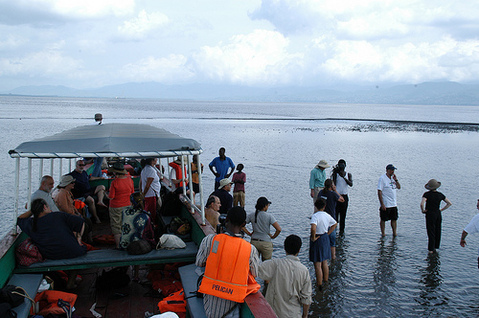 So I led the tour of Bunce Island and we had a good time. On the way back however, with two Captains from the reputable company, we got stuck on a sandbar (think dirt bar in this case). And very quickly, by the time most people jumped out to push, the water went from knee deep to ankle to dry, dry…