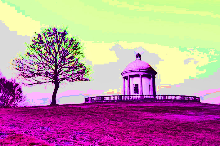 Thecity dances on the horizon in a blurry, summer haze,Providingthe perfect backdrop to think how to change your ways,Anideal place for being thoughtful, so if you need to be reflective, Join the Earl up highin his Temple to think and gain perspective.