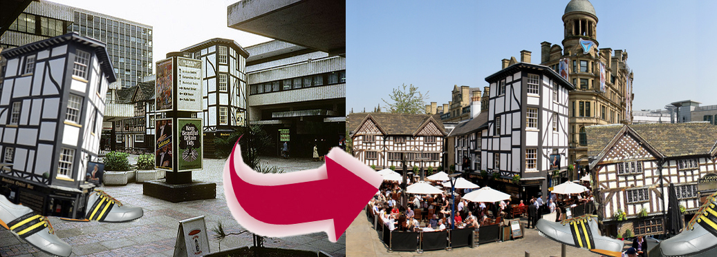 Forwhen they built the Arndale, to make the area neater,Theyhad to raise these boozers up by just over a meter,