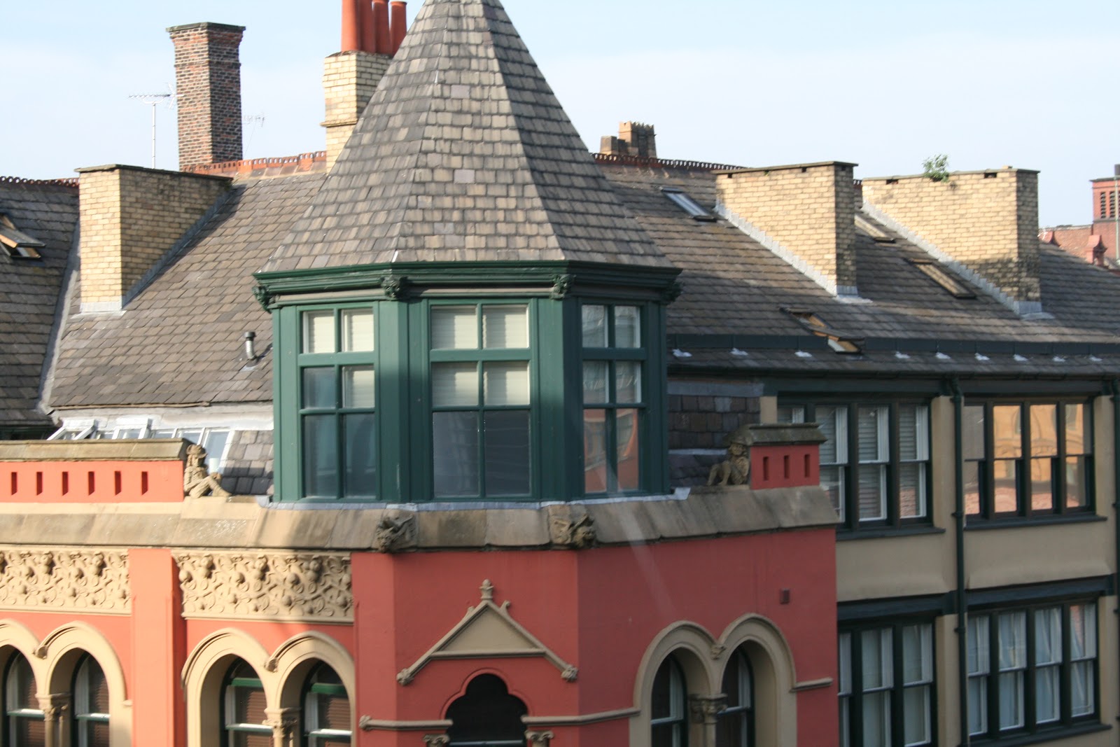 Theylook down at Mancunians as they rush to and from the station,Admiringthe town of Manchester from their place of elevation,Twolittle men of secrecy; maybe Austrian or Swiss,Perchedup so high in Piccadilly, they're so easy to miss.