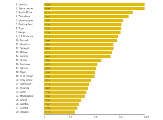 There is also the lack of commitment and prioritization with regard to education. Many African countries have pledged to commit to UNESCO���s benchmark of allocating 15-20% of the annual budget to the education sector. Yet, as the figure below���which presents the latest data on public spending on education per GDP for 28 selected African countries���shows, most have consistently failed to turn that pledge into a tangible reality. With these devastatingly wrong calls on education, the channels of cross-generational transfer of capital���symbolic or material���are fatally broken at best and, at worst, non-existent. As the region also registers the worst education spending efficiency, the social ladder is a portrait of utter anguish for the likes of Affo, with only public authorities and sound policymaking to lean on to make it to the other side of the socioeconomic divide.