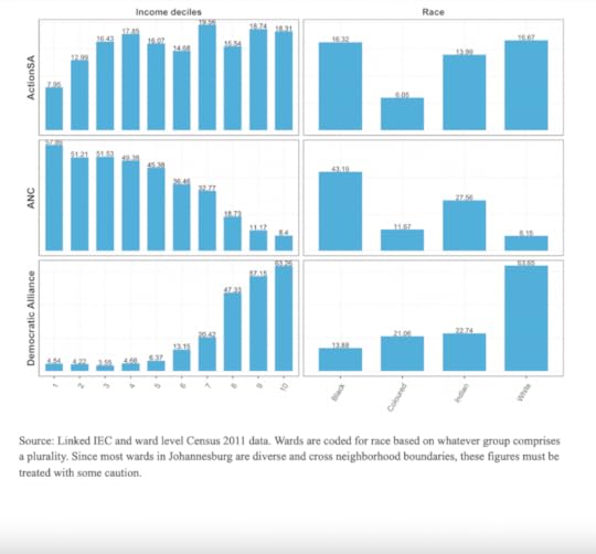 Table 2: ActionSA���s populist message drew diverse support in Johannesburg.Despite these early successes, Mashaba and other aspiring populists will face major challenges in assembling the same kind of coalition that has powered authoritarian populisms elsewhere in the Global South. The first hurdle they face is that their potential middle-class base, which is small to begin with, is heavily segmented by racial divisions which were only deepened in these latest elections. Notwithstanding Mashaba���s small inroads, the DA���s pivot to color-blind, culture-war liberalism allowed it to recoup earlier losses and maintain its dominance of the white vote. Coloured voters defected in large numbers from the party, but largely to their own race-based parties.