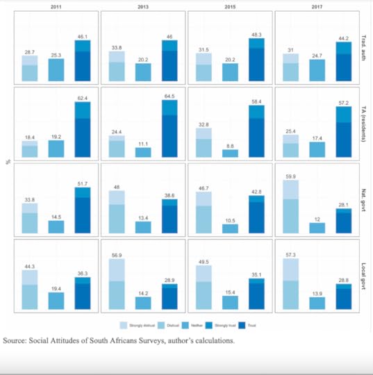 Table 3: Traditional Authorities have retained far greater legitimacy than other spheres of govt.Bypassing chiefly influence and re-tooling a populist message to directly appeal to rural constituents will be a significant challenge for new parties. It���s one that already seems to have deterred the EFF. Consistent with their open reversion to a politics of the belly, the party resorted to bribing a notoriously violent and corrupt Xhosa chief ahead of last year���s elections, and bragging about it on their social media.