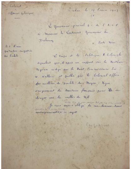 This note reveals the anxieties of both French and British administrations in the early years of colonial rule in Africa, as they faced a set of population movements that trumped the logic of their imperial borders.