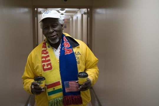 December 7, 2019, Yonkers, NY, Abubakar Ahmed Ali stands outside his Yonkers, NY apartment wearing a USA-Ghana scarf from a 2017 friendly. Image credit Michael de Vulpillieres.Thirty-two-year-old NY Dragons midfielder Aly Lawal, one of a few non-Togolese players on the team, initially arrived in Houston from Burkina Faso for his studies before making his way to New York City to find work a few year later.