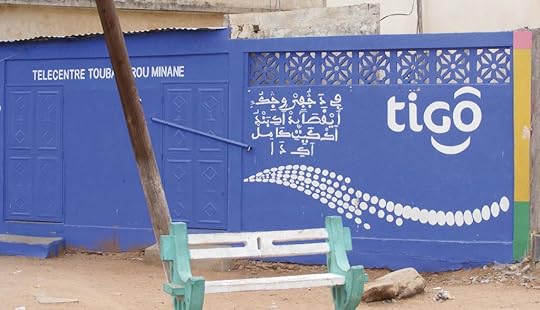Shopkeeper���s Ajami advertisement in Diourbel, Senegal, reads: ���Fii da��u fiy wecciku ay Qas�����id aki band(u) ak kayiti kaamil aki daa��� [Poems, audiocassettes, Quran-copying quality paper and ink are sold here].��� TIGO is a reference to a mobile phone company. Image credit Fallou Ngom, 2015.The growing use of Ajami in public life can be observed also in neighboring Nigeria.