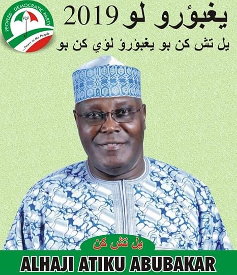 A poster published during the 2019 general elections depicts the picture of a Presidential aspirant, Atiku Abubakar, of the opposition party���the People’s Democratic Party (PDP). The translation of the Nupe Ajami inscription reads��“Vote President 2019”��and “Let’s vote credible president for positive change.” To the left is the party’s logo. The��last inscription (in red) says��“For president.���