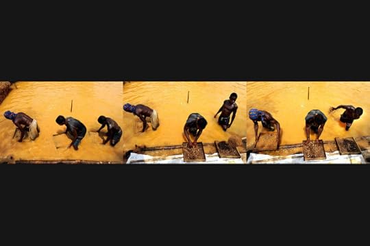 It is particularly surprising that the photos bear no context or framing without the written text. This produces the kind of flattening out of all of Africa and of all Africans so present in the many problematic tropes representing the continent; a flattening out that homogenizes and de-historizes African specificities and particularities. We know how incredibly difficult it is to create new images when expectations overwhelm most viewers/readers. I myself am clearly unable to see these images as other than troubling representations of black bodies. This is perhaps unfair, but I am looking for something in them that would shift my perspective, not just about embodied labor, but about African labor and African bodies.
