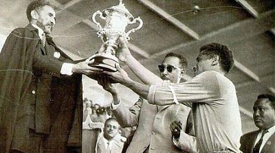 1962 captain Luciano Vassalo receiving the cup from Emperor Haile Selassie. The Ethiopians defeated rivals Egypt 4-2 in a thrilling final. Photo: Bezabeh Anbetew