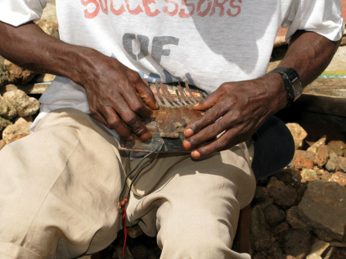 The multi-named thumb piano is quite an important foundational instrument for contemporary music all over the world, although it’s perhaps not always recognized as such. In Congo, colonial era missionaries banned the instrument from their services, saying that its association with traditional spiritual practices sullied the sacredness of the choral music they were adopting to the musical cultures of the people they sought to convert. But, the instrument lived on in Congolese pop as guitarists in Kinshasa adapted the style to their finger picking Cuban-son infused Rumba. The instrument has also travelled far and wide beyond Africa. I’ve seen versions of the thumb piano in historical photos of Jamaican Mento bands, and it is common in Latin American musical history as well. I wouldn’t be surprised if a few thumb pianos made their way to the American South helping to influence the blues guitar style that originated there.