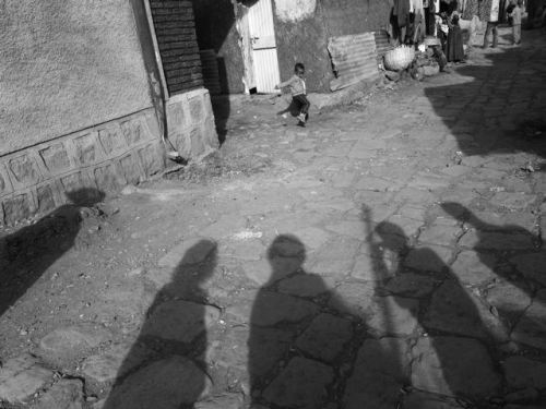 When I first arrived in Addis Ababa in 2007, one of the first things that I did was teach photography to a group of art school students. In their first week of the workshop, they spent a few days shooting along this road that led to the art school, which is part of Addis Ababa University. This small side road that is marked by cobblestones was a short cut for many of the students and they had an interesting relationship with the community.