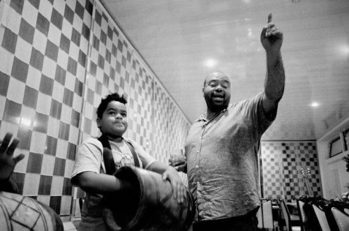 It is easy to slather him with superlatives as his fans on Facebook and the press do. He deserves all that and more. The more of course would be serious critical attention. The international press – and this was the case for the most part this summer in France – still mostly cast him as a poster boy for post-war Angola even when they give him high praise. Now, the album is titled “Ex-Combatentes” (Ex-Combatants), which happens also to be the name of the street he lives on in Luanda, but the music in sound and lyrics has little to do with war. Unless one thinks of war in the widest sense – war with the self, war with family, neighbors, friends, etc. Like in the blues tune on Ex-Combatentes, ‘Eu quero é paz’, written with Albano Cardoso. Perhaps what Flores does most brilliantly is to capture Angola’s humanity, at its extremes and in its intimacies; the war on all fronts, the small peaces made every day.