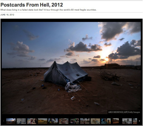 The Postcards from Hell also insist that there are no white people in this year’s story of state failure — not even the people of Greece, who are informed — surely to their incredulity — that they are living in one of the 40 most stable nations in the world. Egypt is ranked 31st, but nowhere in the account of “just how it came to be that way” is there a mention of the annual $1.3 billion of U.S. military aid (recently reinstated) that continues to complicate attempts to establish parliamentary democracy in the country. European colonialism and the Cold War are scarcely mentioned, yet the reader is somehow expected to form an adequate understanding of the problems faced today by a country like Angola. Is late 20th-century history too far back in the past for Foreign Policy to bother itself with?