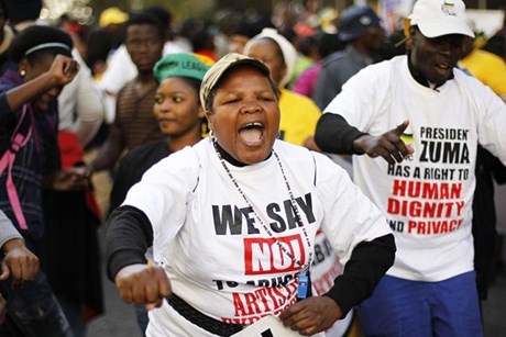 No wonder that Penisgate, like all supernovas in our galaxy, had an ego with a massive gravitational pull. Weeks have been spent considering the unequal amounts of dignity afforded to white or black male genitalia; and how/whether it was racist to continue to disparage black men’s sexuality, even though we all knew that all that the artist was doing was cutting and pasting one set of genitals over another already overexposed and extraordinarily empowered man’s general crotch area. When protests were organized by the ANC, people were bussed in from all parts of the country; in the live report (of the South African newspaper) The Times, we have one member of the public, Sipho Mweli, who reported that he came all the way from Mpumalanga to join the protest in support of Zuma. He hung a cardboard placard around his neck, on which he had handwritten a message to Brett Murray: “Draw your white father naked not our president.” Classic.