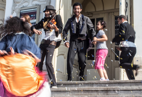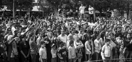Back to Habib Bourguiba in Tunis. The gathering of “Salafists” reportedly threw eggs, bottles and other objects at the performing artists. They also allegedly prevented the artists from leaving the theatre until rescued by the police. Following this incident, Tunis artists condemned both the interior and culture ministries for failing to protect the actors from the violence and for not protecting their freedom of speech from the “salafists”. This was not the end of the matter though. Come May 26: the revenge of the theater actors on Habib Bourguiba. This time around, the events went well without much hitch. No counter gatherings of salafists. Plays, operas, children’s events, participatory performances by audiences and even some “open society” speeches lit up the front of the municipal theater. Some of the activities and performances are captured and presented in the photos above, below and on our Tumblr.