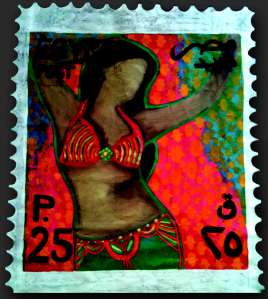 Arguments around the affinity between art and pornography have been too frequent in Egypt recently. I have mentioned Mahmoud Amer's accusations in recent posts. Sophia Azeb has described the hysterical responses to Aliaa Elmahdy's naked self-portraits. Against the gaudy backdrop of these arguments – where conservatism and protest, Islam and Western, religion and 'secular' art are divided into predictable encampments – consider this painting by Mai Heshmat. Its her proposal for the new Egyptian stamp – now Mubarak's head has been deposed – and demonstrates a refreshing humor. The ambivalence of this woman's faceless face is suggestive of the way bodies have become canvases for political debate. Remember the logic that virginity tests were carried out by the army on female activists in order to establish that they could not claim to have been raped by the soldiers. And yet the work, veiled in colour, seems playful, even celebratory. There is something jarring in her acid green outline: it is a complex and satirical image. This is art which provokes thought without seeking to be provocative.