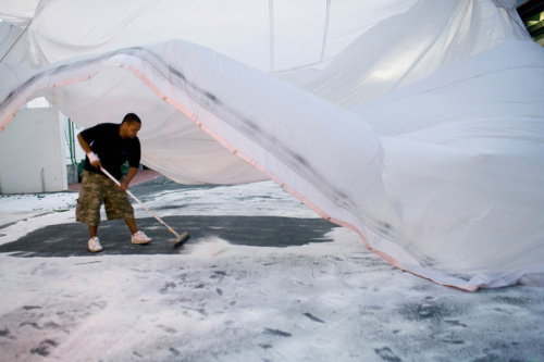 Finally, she also includes the occasional image like the one below where a black staffer does the hard work ahead of the shoot captured in the first image.