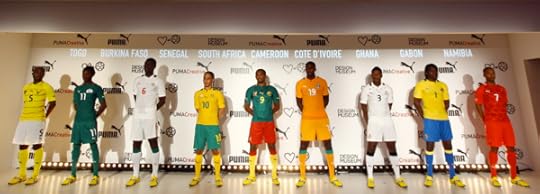 It is (sort of ) a nice project. Puma Creative invited ten artists to design a new football kit that 'celebrates Africa's unique visual identity and culture', with a strip for each of the partnering African national football teams: Algeria, Burkina Faso, Cameroon, Gabon, Ghana, Ivory Coast, Namibia, Senegal, South Africa and Togo. The launch happened this week in London and the kits look alright when they are on, and from far away.