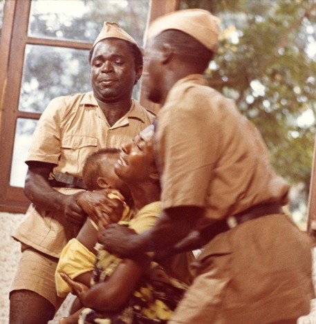 Maldoror was by no means an outsider to the liberation movement in Angola. She was closely involved with the MPLA – the Popular Movement for the Liberation of Angola – as her husband, Mario de Andrade was its former president, who had a close role in the writing of Sambizanga's script. In her life, as in her films, Maldoror is concerned with community, action and politics. Her scripting of a powerful, stubborn and loving woman as the central character of her feature film both embodies and provokes the complex notions of community during struggle, and what political struggle really is. Domingos is the 'activist', brutally treated for the possession of a mere flyer, his struggle is physical, degrading, the scenes of his torture are difficult to watch for Maldoror has so adeptly shown us his compassionate and loving character in an earlier family scene at his home. Maria's struggle is protracted, anguished, in the dark. A community of women come to her aid to remind her of her responsibilities to her child. Maldoror achingly reminds us of the ongoing struggle to continue living in such politically volatile times.