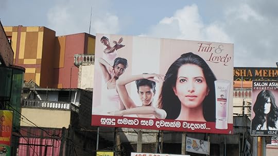 Wait till you see the adverts people walk past daily in India or Sri Lanka. This huge billboard (above) sits somewhere on the 10-kilometre distance from Kelaniya (my family's ancestral home) to Colombo (the city). The script below the ever-whitening out images of the model says: "For white/light skin, apply daily".