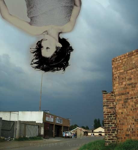 At the margins of this year's Art Basel (15-19 June) and curated by Christine Eyene, FOCUS11 presents a group of African artists in the city of Basel, Switzerland this weekend. The selected artists ("reflecting new trends in Africa and the Diaspora") are Nirveda Alleck (above is "Suspended Thought," a 2006 photocollage by Alleck), Natalie Mba Bikoro, Graeme Williams, Ato Malinda, Mohau Modisakeng, Jan-Henri Booyens, Steve Bandoma, Rowan Pybus, Ntando Cele, Vitshois Mwilambwe Bondo, Fabrice Wamba and Youssef Tabti (who is distributing this postcard all over the city these days). With the exception of two, all of the artists seem to reside in South Africa or Europe.