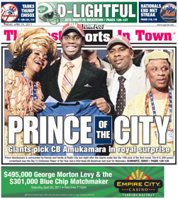 The Daily News wasn't any different with its "Royal Wedding! Giants select a Prince" headline and a similar photograph of Amukamara and some of his family members: