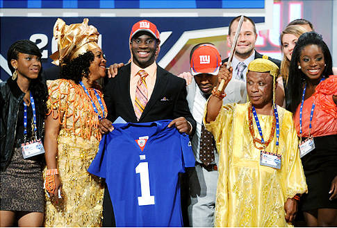 It's the socialist National Football League (of America's) Draft in New York City this week and one of the two local teams, the New York Giants (they actually play in New Jersey), picked Prince Amukamara, a cornerback from Nebraska, who grew up in the suburbs of Glendale, Arizona. His name and family history (his grandfather was a Nigerian king) was enough for some New York media to go heavy on the royal references.
