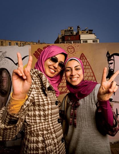 This is possibly something Mohamed Diab, one of those photographed (photo above), would have liked to discuss in more detail with Henry Porter, the author of the essay attached to the series. His film"678," which examines the daily sexual harassment the majority of Egyptian women face, is a harsh and necessary critique of the many issues Egypt and Egyptians must address. Certainly, Drs. Mohammad and El Sheikh as well as Ahdaf Soueif's nieces, also pictured (below), would appreciate their fellow revolutionaries joining in the fight against the harassment and oppression of women that persists at all levels of Egyptian society.