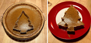 Some years ago, I got it into my head that just as there are cookie cutters for cookies, there should be pie cutters for pumpkin pie. I bought the deepest tree-shaped cookie cutters I could find, thinking I could stack them and produce festive pie pieces for a holiday party. It didn't go as planned. I couldn't get the stacking to work, and the result of using just one cutter was kind of a disaster: