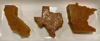 I was so pleased with the result (shown at the top of this post), I started looking for new pie-cutter-shape ideas. For reasons not worth going into, I hit upon the idea of US states, and the next thing I knew, I was looking at pieces of pumpkin pie that looked like California, Texas, and Minnesota:
