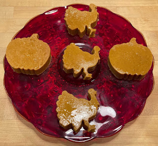 This year I decided that for Thanksgiving dinner, it would be nice to have pieces of pumpkin pie that looked like turkeys and pumpkins, so KindredDesignsCA again did their 3D magic for me:
