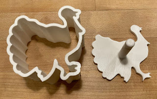 I learned a few new things from these latest cutters. One was that it's a bad idea to try to get too detailed. Check out the well-defined beak in the turkey cutter below...