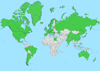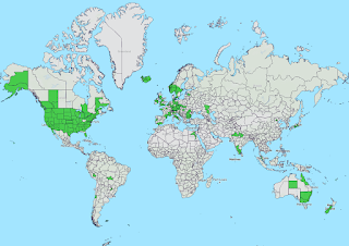 I like to travel. I've been a few places. I have a map on the wall with pins where I've been. Old School, but I started it before the Internet existed. I'd like to move it into the digital era. Looking into that led me to Most Traveled People (MTP) and NomadMania (NM). Both offer the ability to generate maps of places visited based on data you enter. I tried both. The NM data entry process was so slow and cumbersome, I gave up. MTP worked better. The map it produced showing the countries I'd been to makes me look pretty well traveled: