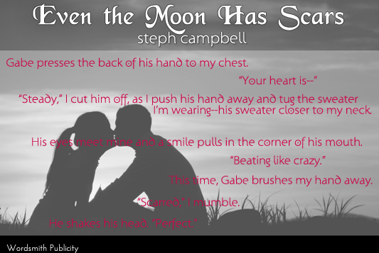 Title: Even the Moon Has ScarsAuthor: Steph CampbellAge: YAGenre: Contemporary RomanceCover Designed by The Cover LureScheduled to release: October 28, 2014