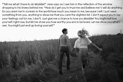 Maddie has been through more tragedy than most people would ever see in their life. She has given up on living, and only living to breathe. With nobody on her side, she has been marked as the cause of her mother’s death and lives with this guilt every day. She is close to giving up until she sets her eyes on the one person who doesn't look at her with disgust.Jase is the new guy in school, he was transferred to a new school after moving out of his father’s house into his mothers. But Jase knows about Maddie and knows about her past. He thinks he can keep this a secret. When the truth comes out will they be able to survive their worlds being turned upside down? Will their connection be strong enough to make it through?