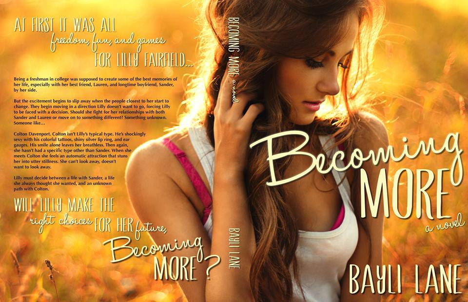 This beautiful cover, BECOMING MORE by Bayli Lane, was designed by Angela Fields. Isn't it a beautiful design?!