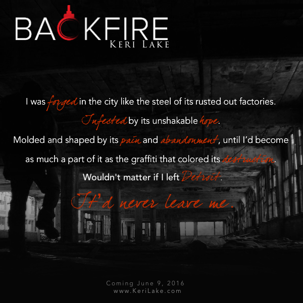 Title: BackfireSeries: A Vigilantes NovelAuthor: Keri LakeGenre: Adult Contemporary Romance - StandaloneRelease Date: June 9, 2016