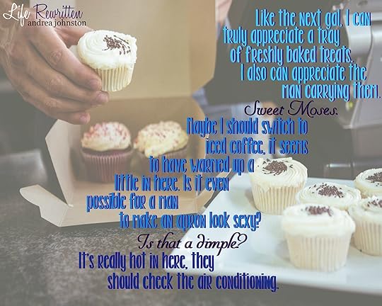 Oh sweet baby jeebus. He’s going to bake. In my kitchen. He could only be sexier if he mopped the floors after. Get it together, girl, he’s just a guy. Barely a friend and definitely not interested in a forty-year-old single mom with a fondness for spending her nights with a pint of ice cream and book.