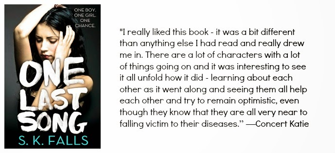 Amazon: http://www.amazon.com/One-Last-Song-S-Falls-ebook/dp/B00N7TDP44B&N: http://www.barnesandnoble.com/w/one-last-song-s-k-falls/1120259034?ean=9781455563074iBooks: https://itunes.apple.com/us/book/one-last-song/id914552383?mt=11Kobo: http://store.kobobooks.com/en-US/ebook/one-last-songGoogle Play: http://books.google.com/books/about/One_Last_Song.html?id=NaGKBAAAQBAJ