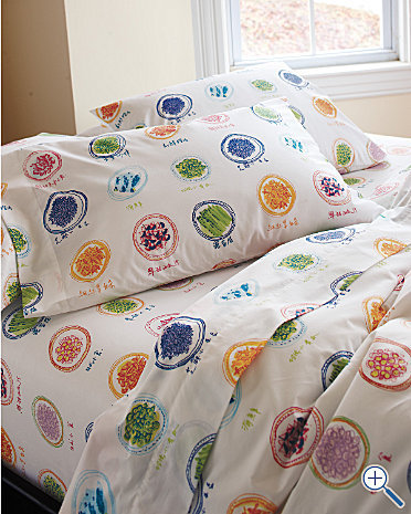 I used to dream about Chinese food while writing Kitchen Chinese. I should have made my bed with these wacky Chinese takeout sheets. They're printed with pictures of Chinese food, with the names of the dishes in characters. I wonder if they satisfy midnight kung pao cravings?