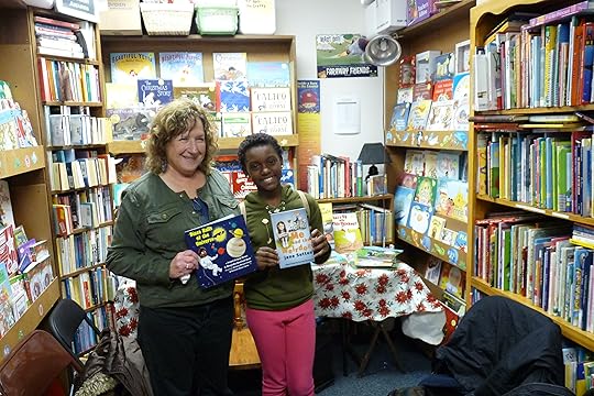 Imani Ariana Grant and I had fun posing with each other’s books. Her picture book DISCO BALLS OF THE UNIVERSE manages to be educational and entertaining at the same time. Not easy!